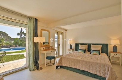 Современная вилла с видом на море идеально расположена в самом центре Кап д'Антиб, в 10 минутах ходьбы от пляжей Гаруп и Салис. Полностью отремонтированная в 2023 году, может разместить до 12 человек на жилой площади около 300 кв.м. На вилле 6 просторных спален с кондиционерами, включая главную спальню с видом на море. В каждой спальне есть своя ванная комната. Полностью оборудованная кухня, просторная столовая на 12 человек и уютная гостиная. На территории виллы разбит сад площадью 1500 кв.м с большим бассейном 12x6 м и террасой площадью более 100 кв.м, с которой открывается панорамный вид на море. На открытом воздухе также есть площадка для игры в петанк, обеденная зона и зона отдыха. В доме установлены электрические жалюзи, сигнализация и парковка на 4 машины.