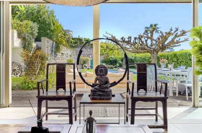 Located within a private and secure estate in the highly sought-after western part of the Cap d’Antibes peninsula, this fully renovated villa enjoys a prime position just a few minutes’ walk from the beaches.