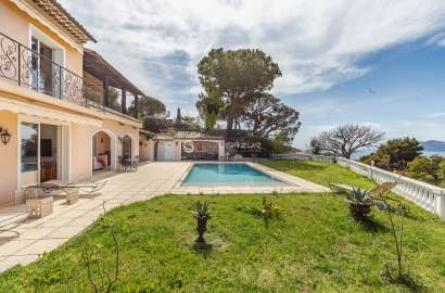 Villa confortable se situe dans un quartier calme dans les collines de Cannes, avec une vue sur la mer. A l'entrée principale il y a une chambre des maîtres avec une salle de bains et un accès à la terrasse donnant sur le jardin et la mer, 2 chambres avec lits doubles, 1 chambre avec lit d'enfant et deux salles de bains. Au niveau inférieur il y a une salle de séjour, une salle à manger, une cuisine entièrement équipée, ainsi que des pièces de service et un bureau avec un accès au jardin. Dans le jardin, il y a une grande piscine chauffée, un salon d'été, une salle à manger et une belle vue sur la mer. Les places de parking, alarme, climatisation, internet. Centre de Cannes est à 5-10 minutes en voiture.