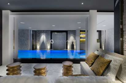Chalet, skis aux pieds, à Courchevel 1850, dans le chic Quartier du Nogentil, de 580 m2 sur 6 étages, pouvant accueillir jusqu'à 12 invités, avec ses 6 chambres, 6 salles de bains attenantes, piscine, foyer, spa, terrasse de 49 m2 et des vues magnifiques sur la montagne, pour vos vacances d'hiver dans les Alpes Françaises chez Casol! Direction l'espace thermal pour vos moments de plaisir, avec votre piscine de dix mètres, sauna, hammam, jacuzzi et cabine de massage! Un sanctuaire de relaxation idéal après une journée sur les pentes de ski.