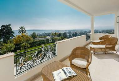 Абсолютно нова вілла класу люкс з панорамним видом на море розташована на пагорбах Канн.Вілла виконана в неокласичному стилі і має свій шарм за рахунок чітко продуманого інтер'єру, в якому майстерно поєднуються різноманітні арт-об'єкти, сучасні та антикварні меблі.На віллі встановлені броньовані вікна та двері, для посиленої безпеки мешканців.Вілла площею 485 кв.включає 5 спалень (кожна з яких має свою ванну кімнату), кухню, простору і світлу їдальню, вітальню з виходом на терасу, басейн з підігрівом і сад, спортзал і домашній кінотеатр.Також на віллі є квартира-студія для проживання персоналу.Паркінг та гараж.
