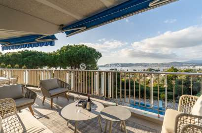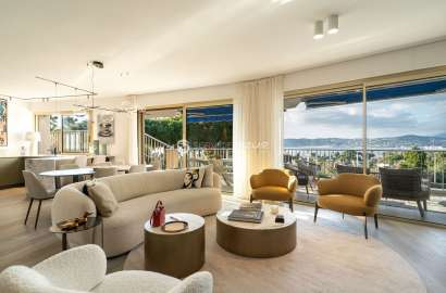 Розташовані в самому серці Кап д'Антіб, ці ексклюзивні апартаменти площею 131 м², повністю відреставровані 2024 року з використанням якісних матеріалів, пропонують панорамний вид на море, пагорби Канн і затоку Жуан-ле-Пен. Простора тераса площею 70 м², зі східною, південною і західною орієнтацією, обладнана шезлонгами, диваном і обіднім столом на вісім персон, ідеально підходить для релаксації і прийому гостей.